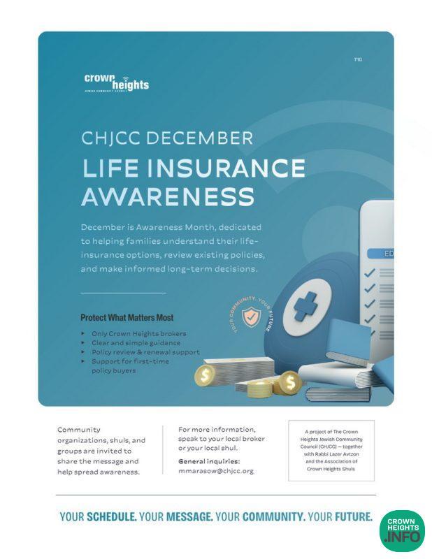 Throughout December, CHJCC will engage local Shuls, schools, community groups, and licensed Crown Heights insurance brokers to increase awareness, clarify misconceptions, and ensure families have access to reliable, unbiased information. The goal is to make life-insurance guidance accessible, simple, and relevant for every stage of life.