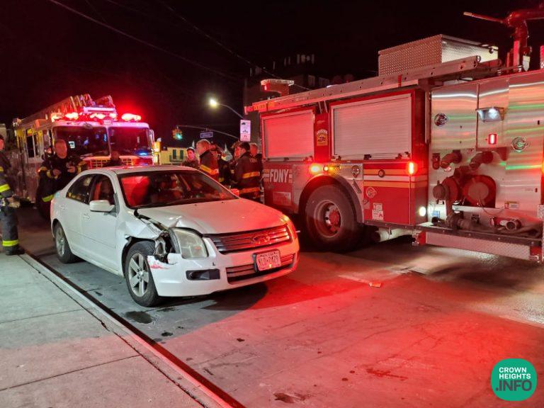 FDNY Ladder 174 got into a minor accident Tuesday night leaving a white Ford sedan damaged, but no injuries.