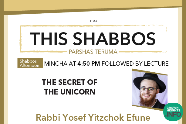 This Shabbos at the BESHT: Rabbi Yosef Yitzchok Efune is currently studying in kollel, and will be giving a shiur this week on “The Secret of the Unicorn.”