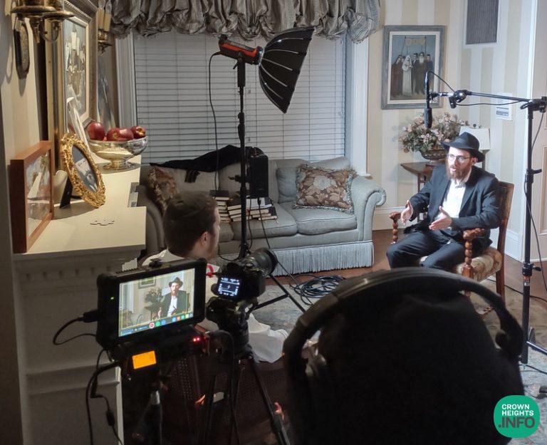 In this pjoto, Rabbi Shmully Avtzon is being interviewed for an upcoming video presentation that will be played in Yeshivos around the world to launch the global Matanos initiative.