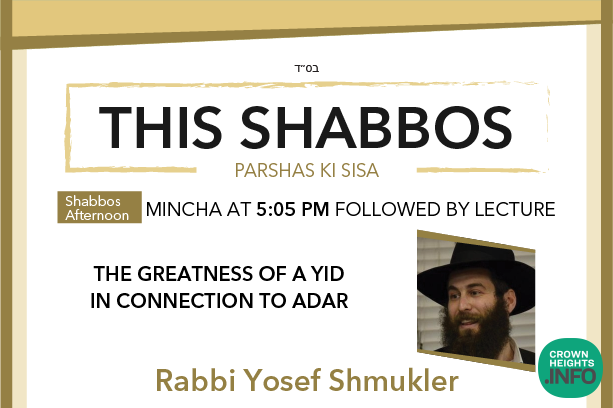This Shabbos at the BESHT: Rabbi Yosef Shmukler runs the smicha program in the Kollel of Chabad of Upper West Side Manhattan. He will be giving this weeks shiur on The Greatness of a Yid in connection to Adar.