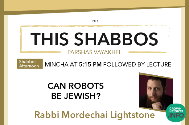 This Shabbos at the BESHT: Rabbi Mordechai Lightstone is the founder of Tech Tribe, an affiliate of Chabad Young Professionals serving Jews in tech and digital media, and the social media editor at Chabad.org. He will be giving a shiur this week on the question Can Robots be Jewish?