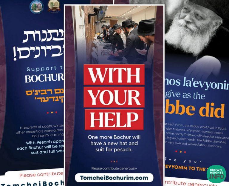 It is well known that each Purim, the Rebbe would call in Rabbi Mentlick A”H and give Matonos L’evyonim towards Kupas Bochurim, taking care of the needy Tmimim, who needed assistance with purchasing clothing and other needs.