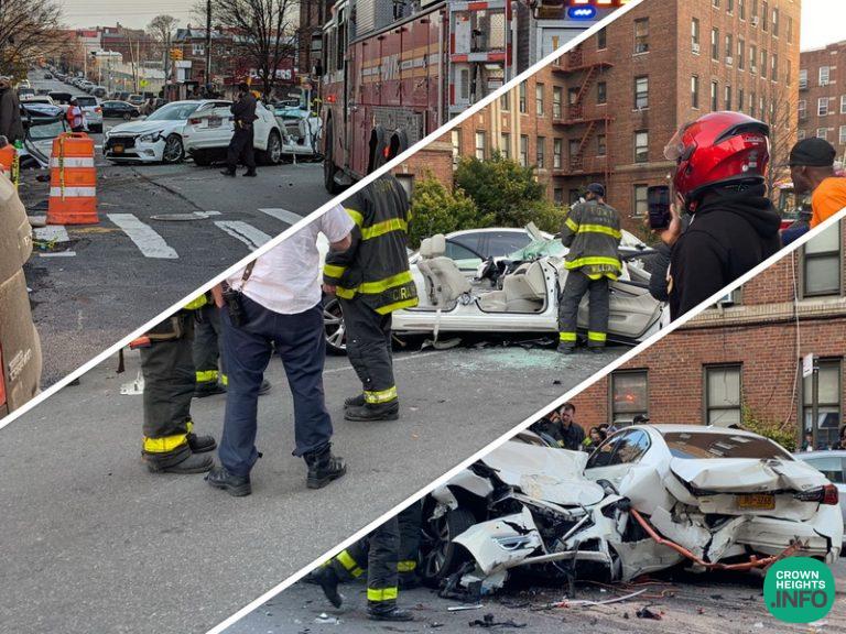 A multi car crash in Crown Heights Friday afternoon had emergency vehicles rushing after a person was confirmed as being pinned inside the vehicle.