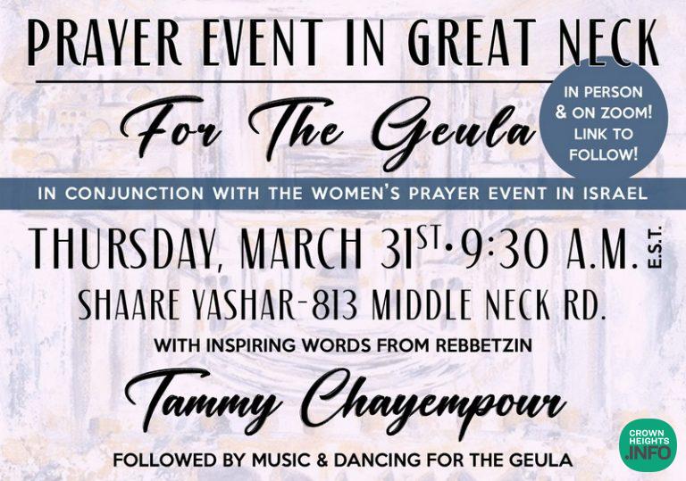 Join Jewish women and girls worldwide for inspirational words will be shared by Rebbetzin Tammy Chayempour followed by signing & dancing for the Geulah.