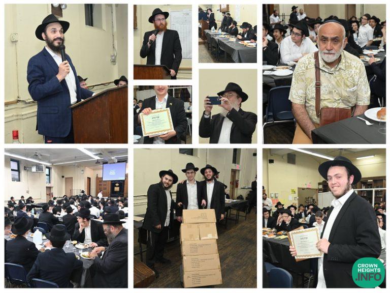 The parents, grandparents and Yeshiva Hanhallah of Yeshivas Tomchei Temimim Lubavitch of Queens, gathered Monday, to mark the graduation of the Shiur Daled from Mesivta. Joining them in their celebration as well, were the Talmidim who memorized the entire Masechta Shabbos by heart.