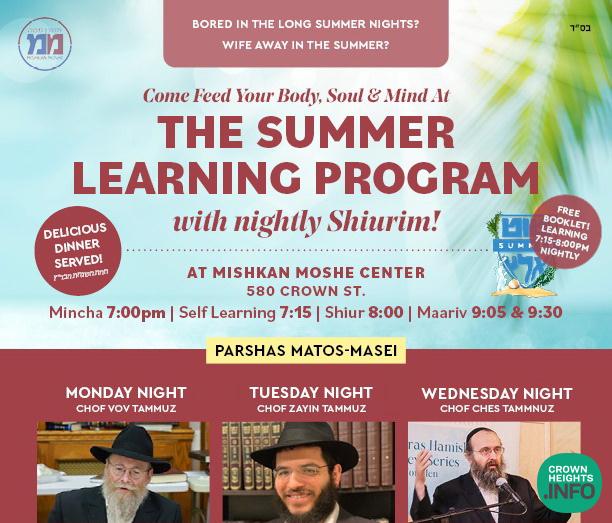 Bored in the long summer nights? Wife away in the summer? Come join the Summer Learning Program with nightly Shiurim by leading magidei shiurim.