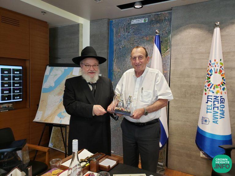 Tel Aviv Mayor Ron Huldai’s Hebrew birthday date is the 5th of Elul and it was celebrated according to the best tradition in his office in the municipality, together with Rabbi Joseph Gerlitzky, the Lubavitcher Rebbe’s emissary to Tel Aviv.
