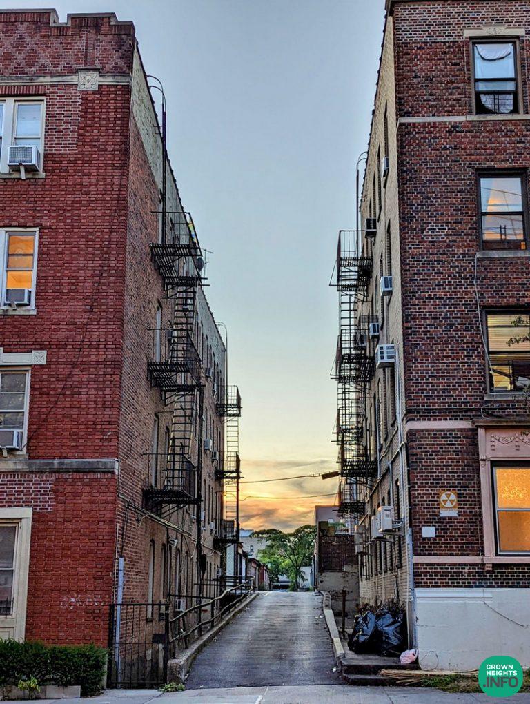 Crown Heights resident and photographer Shmuli Evers captured this stunning image of a sunset in the background of a very Crown Heights landscape.