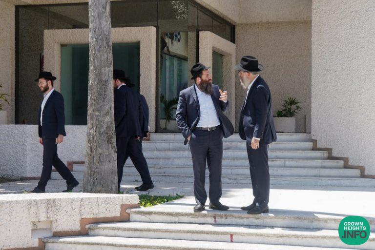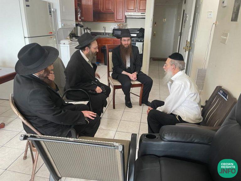 Rabbi Braun, Rabbi Kassimov, and Rabbi Raichik being menachem avel Hagoan Harav Hadayan Shmuel Felder of Bais Din of Lakewood, brother of Mrs. Bina Cunin of Crown Heights. Their mother, Rebbitzen Chaya Felder passed away at 102 last Tuesday. Senator Simcha Felder and Harav Chaim Moshe of Lakewood are sitting shiva as well.