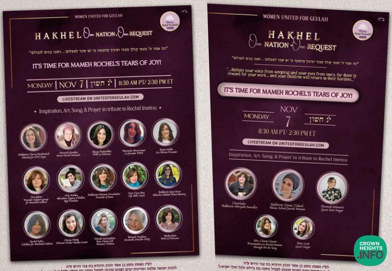 The Women United for Geulah committee has proudly announced a Global Hakhel Geulah Event As Tribute To Rochel Imeinu for all Jewish women worldwide.