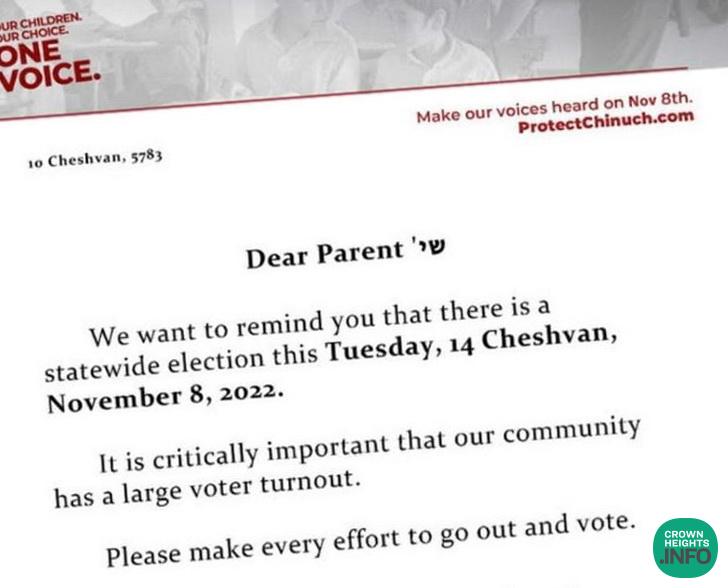 Not or tom but fourteen Crown Heights schools banding together under the Protect Our Chinuch organization to remind everyone in the community to vote.