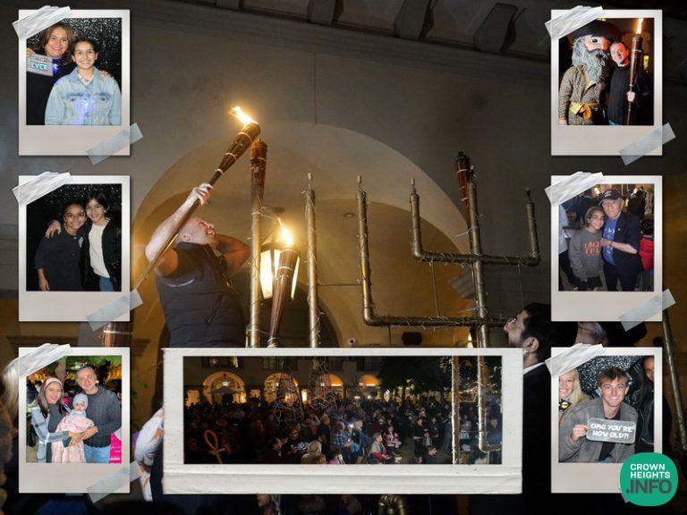 Over six hundred happy faces were seen on Sunday, the first night of Hanukkah at the Maybourne Hotel in Beverly Hills (Beverly Canon Gardens), hosted by the JEM Community Center, with a grand setup of a large 10 foot Menorah, music, face painting, photo booths, fruit carts, latkes, and of course the traditional donuts.