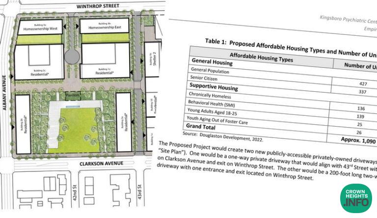 NYS Empire State Development (“ESD”) is in the process of bringing affordable housing to the Crown Heights Community, at 681 Clarkson Ave (NE Corner of Albany and Clarkson). The project includes the creation of 764 units of general housing, and ZERO parking spots.