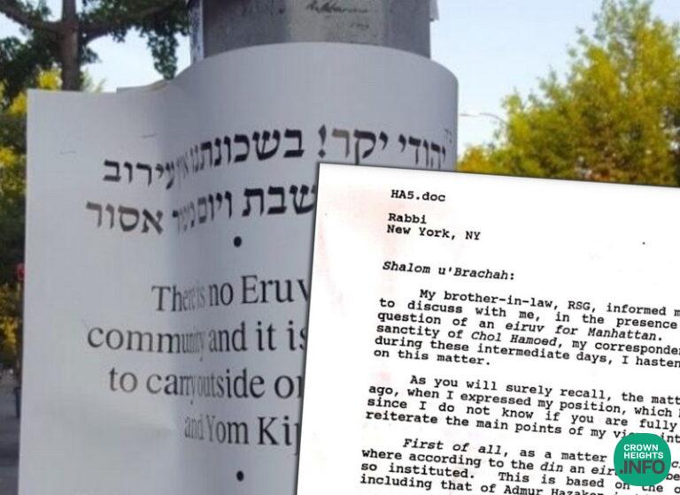 An article by Rabbi Eliyahu Uminer, where he delves into a comprehensive analysis of the letter written by the Rebbe. In response to Rabbi Nochum Zajac’s recently published op-ed where he published an answer from the Rebbe concerning the Manhattan Eruv.