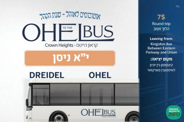 In honor of Yud Aleph Nissan, the Ohel Bus Service will be providing extra subsidized transportation round trip from Crown Heights to the Ohel from Thursday, March 30th through Sunday, April 2nd.