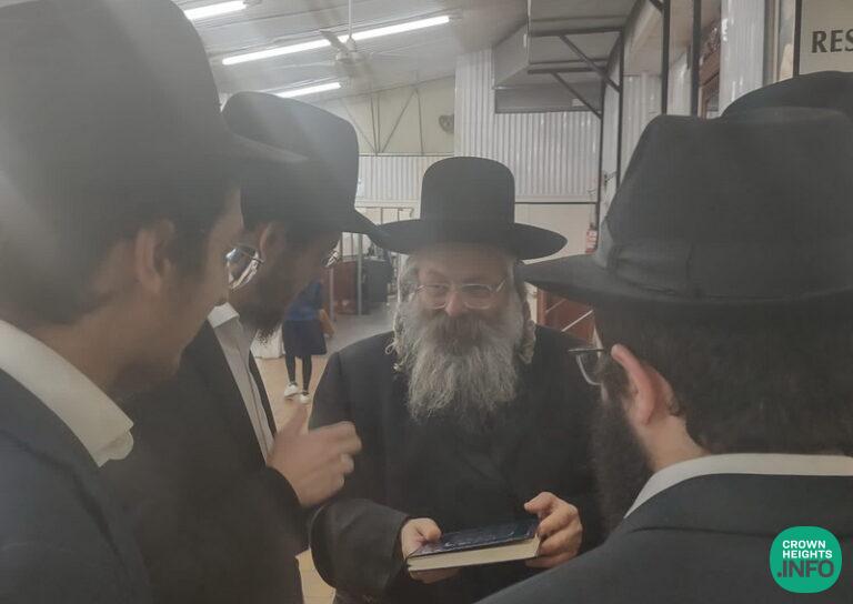 Rabbi Nechemia Alter, the son of the Gerer Rebbe, visited the Ohel on Wednesday. Upon leaving, a group of Bochurim learning at the Ohel gave him the Sefer “Otzros Hamoadim” – the Rebbe’s Torah about Shvuos, and spoke with him about Shnas Hakhel and Matan Torah based on the Rebbe’s Teachings.
