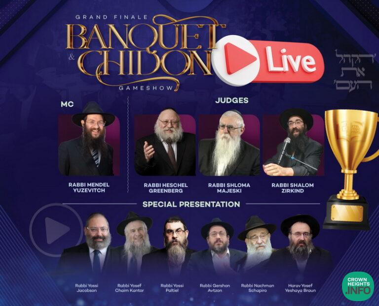 On the upcoming night of Gimmel Tammuz, the Oholei Torah Ballroom will host the International Moshiach Chidon. This event, which includes a 4-course banquet, is specifically for bochurim who have finished the entire Moshiach Chidon learning curriculum and passed the final test.