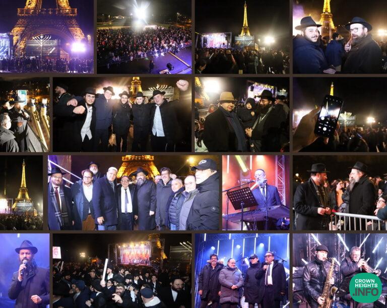 Chabad photographer Mordechai Lubecki captured the moments of the Chanukah Live Broadcast taking place at the Eiffel Tower.