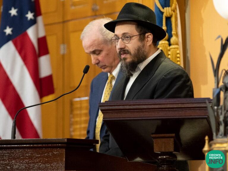 A public Menorah lighting taking place for the first time at Pomona Village Hall was attended by Supervisors Michael Specht and Howard Phillips. Specht, a Supervisor who has found himself with a large Jewish constituency, was honored with reciting the blessings.