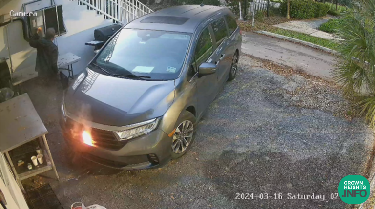 Surveillance Footage Shows Arson That Torched A Car and Damaged The Chabad Center Shabbos Morning