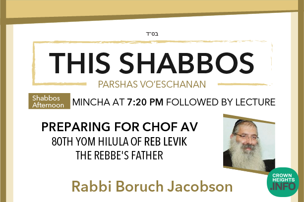 Shabbos at the BESHT: Rabbi Boruch Jacobson is a shliach to Hunter College in NYC. He will be giving this week’s shiur on preparing for Chof Av, 80th Yom Hilula of Reb Levik, the Rebbe’s father.