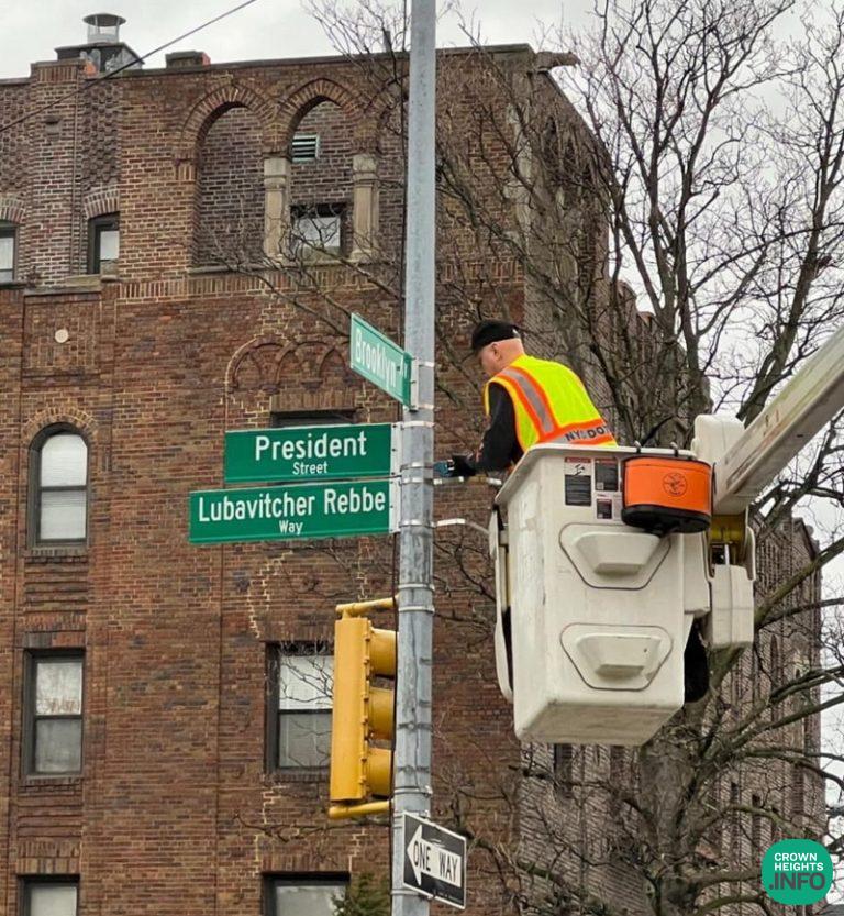 In preparation for the unveiling of Lubavitcher Rebbe’s Way, new signage was installed on President Street.