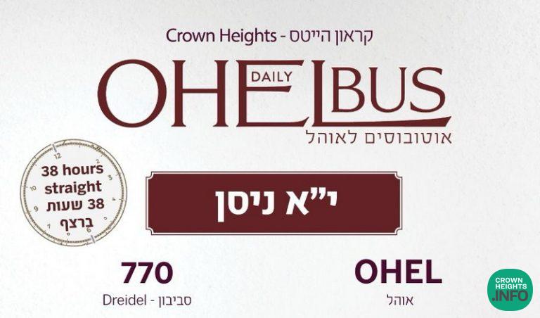 In honor of Yud Aleph Nissan, the Ohel Bus Service will be providing extra subsidized transportation round trip from Crown Heights to the Ohel for 38 hours straight.