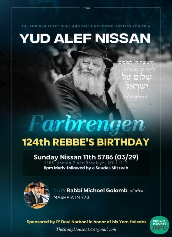 As Chassidim around the world prepare to mark Yud Alef Nissan—the birthday of the Rebbe—a special Farbrengen is being organized for the wider Crown Heights community and beyond.