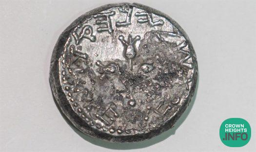The coin weighs about 14 grams. On one side is an inscription of a cup with the caption: “Israeli shekel” and next to the cup are the letters: ש”ב – shorthand for “second year” – the second year of the Great Revolt of the Jews against the Romans (67-68 CE). On the other side of the coin is an inscription identified by scholars as the headquarters of the High Priest, and next to it appears in ancient Hebrew script the words: “Holy Jerusalem.”