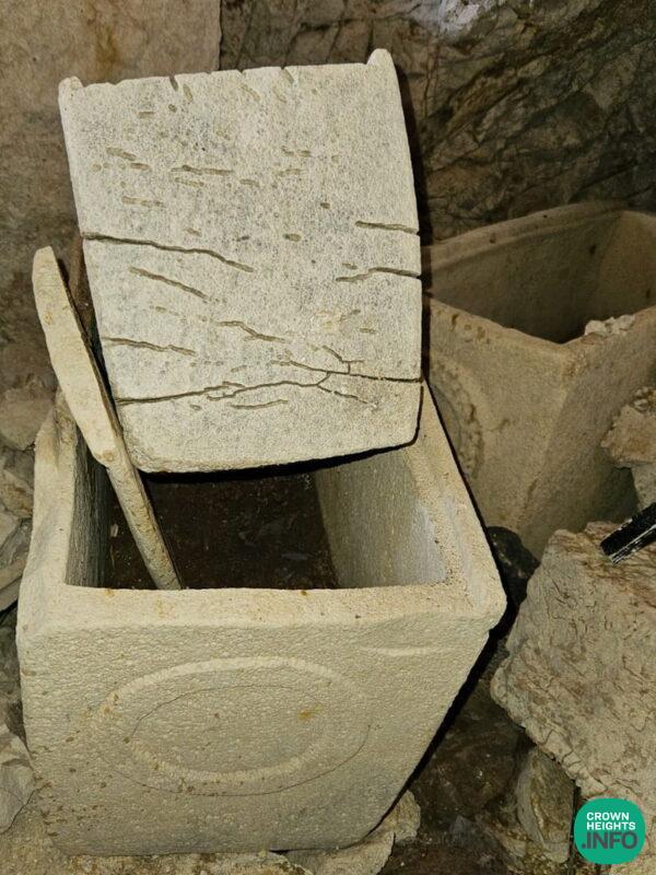 The inspectors of the Israel Antiquities Authority Theft Prevention Unit then noticed several piles of earth in the plot that seemed to conceal something behind them. To their astonishment, the removal of the earth revealed a second rock-hewn burial cave with nine burial niches, also damaged by the earthworks. Three decorated stone ossuaries and fragments of other ossuaries were found inside the cave. The ossuaries were found empty and not in their original location, raising the immediate suspicion that the cave had recently been looted.
