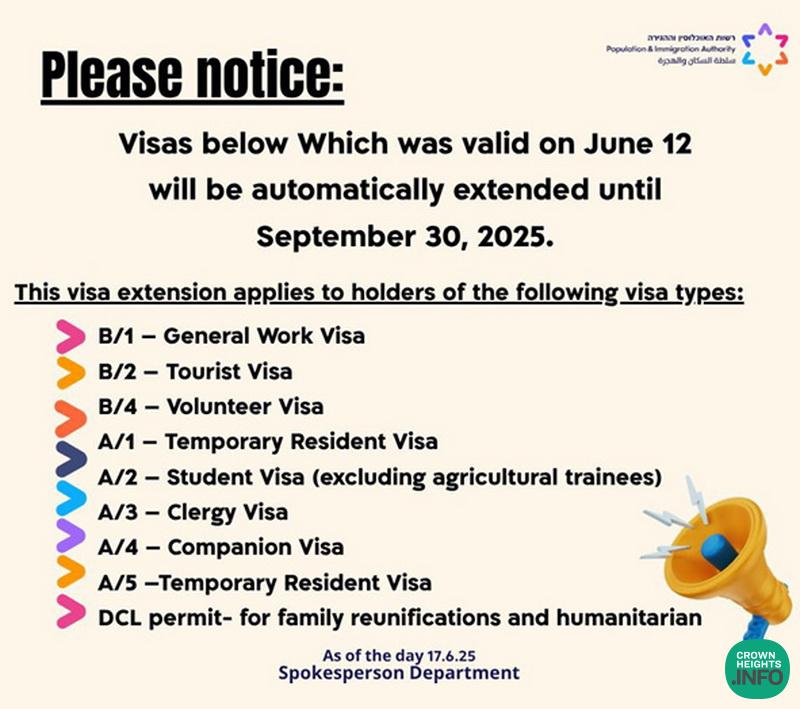 As the Israel-Iran conflict continues to impact daily life across the country, Chaim V’Chessed brings you several key updates have been announced regarding government services and procedures.