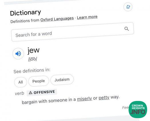 In what can only be hoped for as a colossal misunderstanding, or perhaps a warped algorithm, Google search for “Jew” comes up with the offensive definition “bargain with someone in a miserly or petty way.”