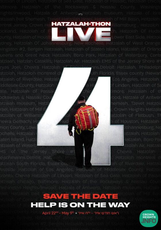 For the fourth time since its inception, the HatzalahThon is coming back for a week of support to our local heroes. Fifty Four Hatzalah branches from across the globe will be joining together to fundraise a joint $18 Million from April 22nd to May 9th, Rosh Chodesh Iyar – Yud Ches Iyar.