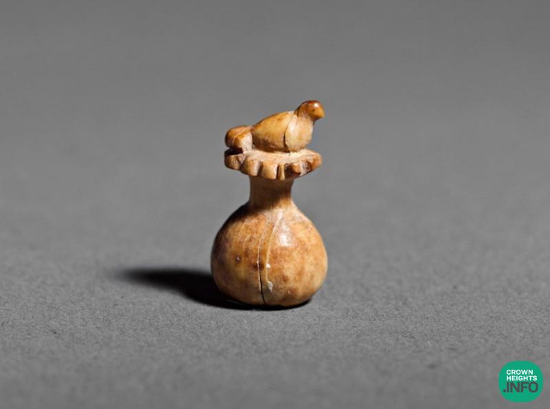 The artifact that was discovered during the sieving process, came from the City of David, from an area considered to be a residential area of the Jerusalem elite. The 2-cm-high carved artifact depicts a dove seated on a pomegranate. A small hole on the base of the pomegranate indicates that the artifact was probably originally attached to a small rod.