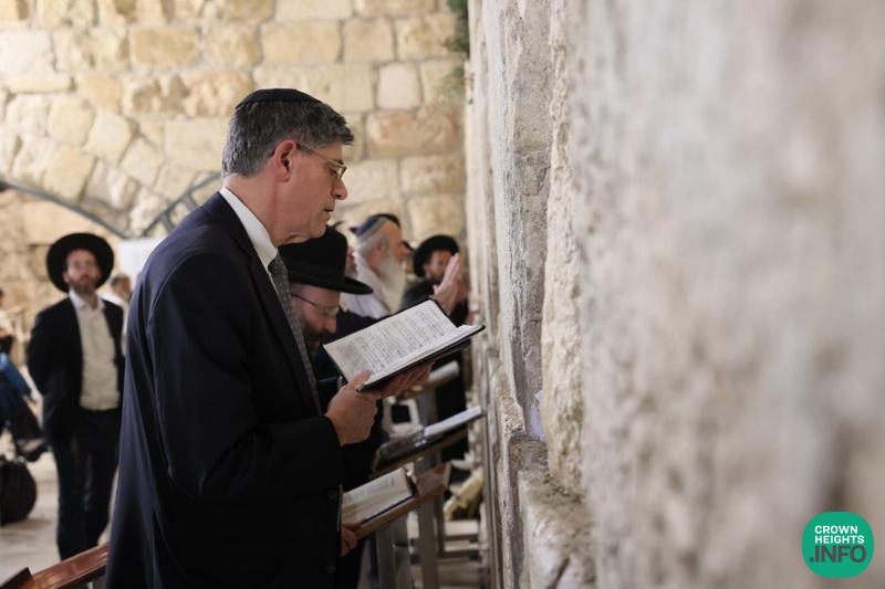 During the visit, the ambassador expressed his support and solidarity with the groups of soldiers and families who had been evacuated from combat zones and were present at the Western Wall at that time. He lit a candle in memory of the massacred and fallen, and together with Rabbi Shmuel Rabinowitz, prayed maariv, the evening prayer.