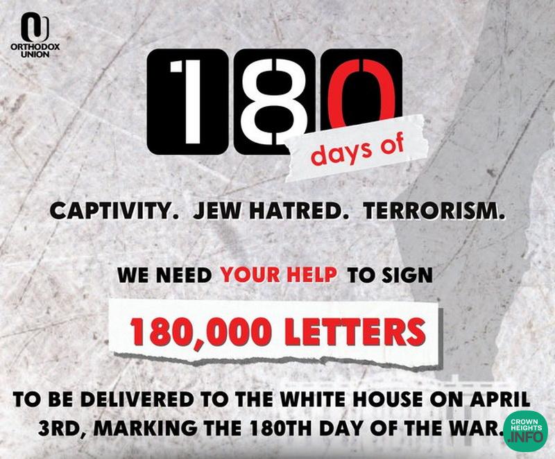 We cannot allow another day to pass without standing up for Israel and demanding the release of our hostages. We need YOUR help TODAY to send a strong message to President Biden to support Israel, combat antisemitism, and secure the release of our hostages. To do so, we will collect 180,000 signed letters that will be hand-delivered to the White House on Wednesday, April 3rd – the 180th day since October 7th. The only way this can happen is if everyone who cares about the Jewish People helps today.