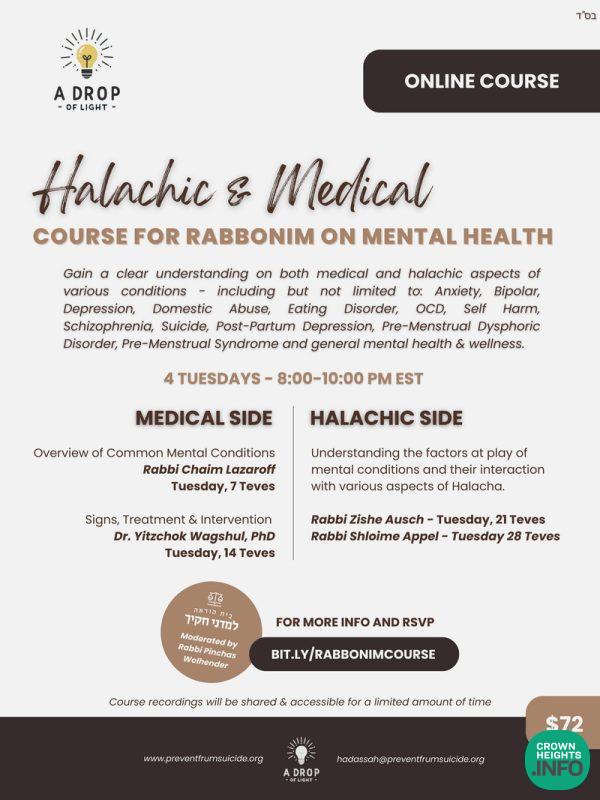 Recognizing the need for Rabbonim across the frum world to be confident and knowledgeable in the areas where mental health and halacha coincide, A Drop of Light, in conjunction with the Beis Horaah Lamdeini Chukecha, organized a one of a kind training course.