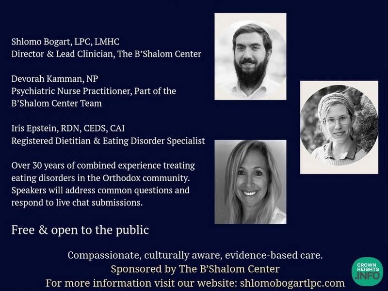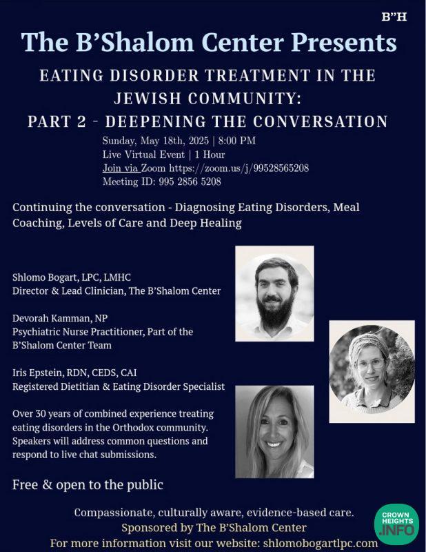 The B’Shalom Center is pleased to announce: “Treating Eating Disorders in the Jewish Community – Part 2”