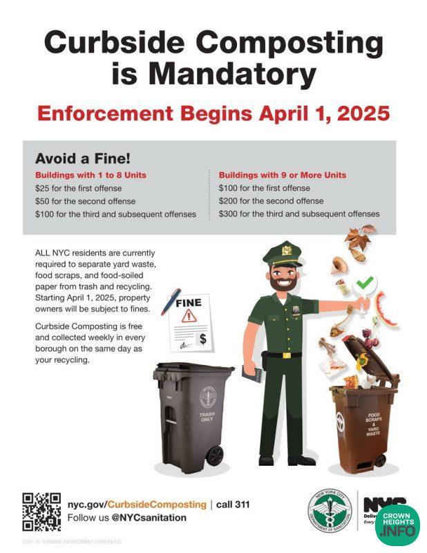 ALL NYC residents are currently required to separate yard waste, food scraps, and food-soiled paper from trash and recycling. Starting April 1, 2025, property owners will be subject to fines.