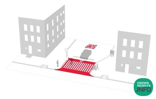 - Raised crosswalks: DOT will begin a program to construct 100 raised crosswalks at curb level annually. Raised crosswalks serve a dual purpose of increasing accessibility for the disability community, while at the same time serving as speed bumps that slow drivers. This work will be done primarily via a new contract with the New York City Department of Design and Construction.
