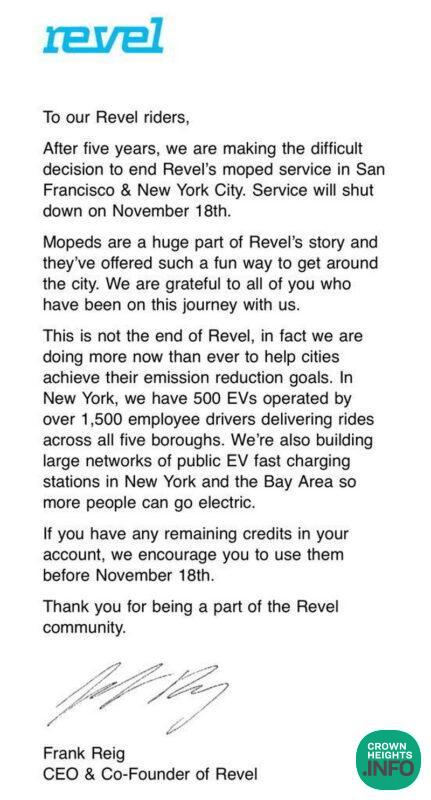 “Mopeds are a huge part of Revel’s story and they’ve offered such a fun way to get around the city,” Frank Reig, Revel’s CEO wrote in an email to Revelers.