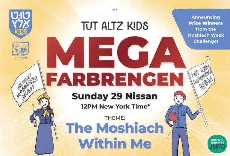 Today at 12:00 PM ET, unite with children around the globe for Merkos 302’s Fifth Annual Tut Altz Kids Farbrengen — marking 28 Nissan by focusing on the Rebbe’s belief in the unique power of youth to bring Moshiach.