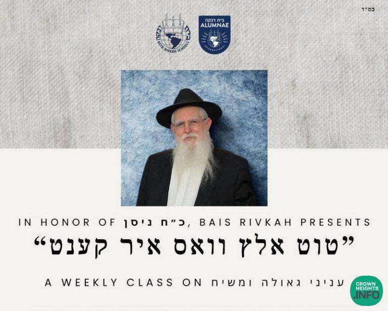 Bais Rivkah Alumnae Launches Weekly Inyonei Geulah uMoshiach Class With Rabbi Shloma Majeski