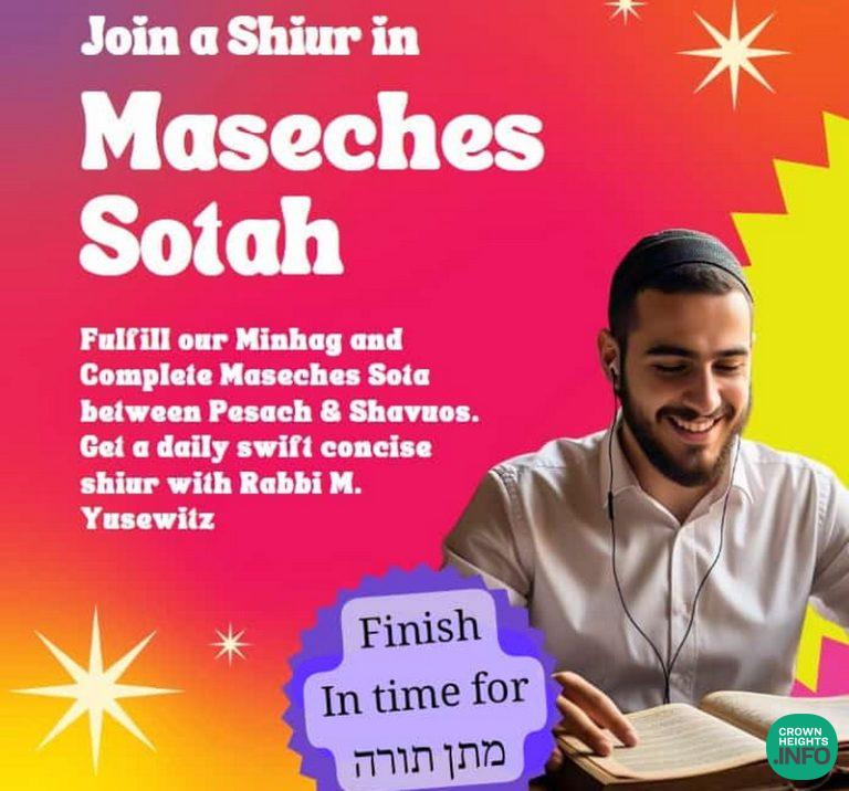 Join A Shiur On Meseches Sotah, Finish Before Matan Torah