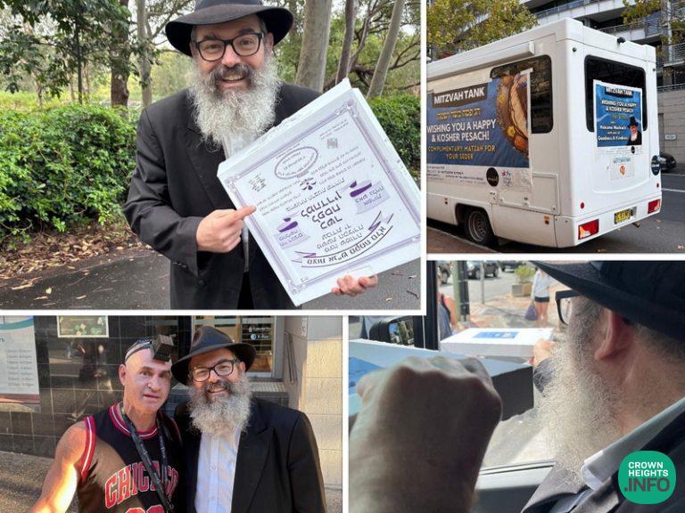 Pesach mivtzoyim in Sydney hit new records this year, with upwards of 700 matzos being given out by volunteers from Tzemach Tzedek Community Centre, Yeshivas Levi Yitzchak and Kesser Torah College, led by Rabbi Yehuda Straiton.