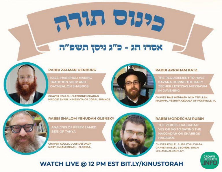 A Kinus Torah was held in Crown Heights on the first day of Chol Hamoed Pesach. Watch the Replay Here.