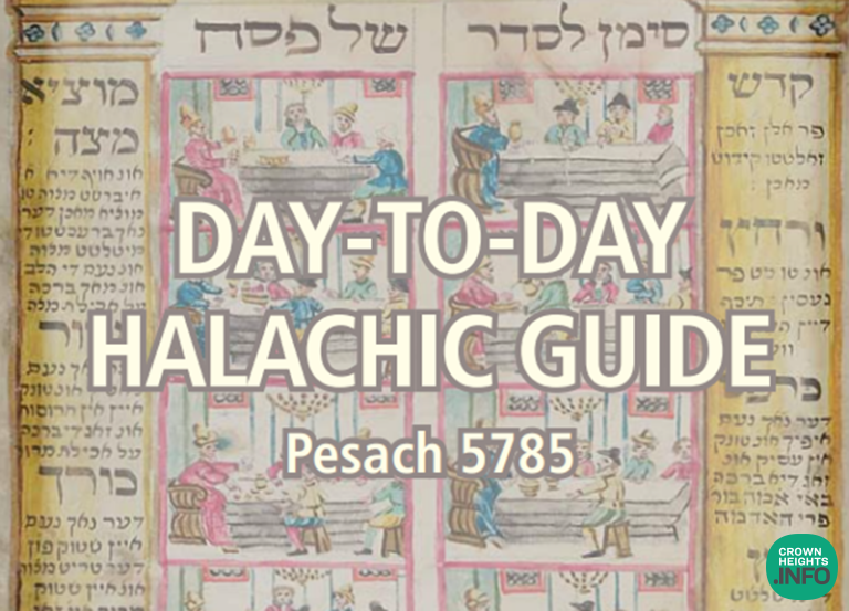 The Day-to Day Halachah Guide for Pesach 5785 has been produced by the Badatz of Crown Heights in Hebrew and English.