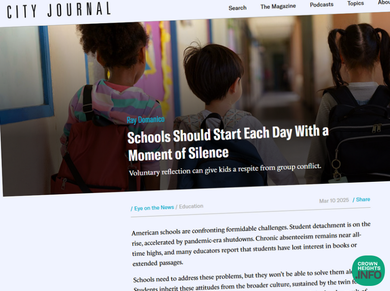 As we approach the Rebbe’s 123rd birthday—recognized as Education and Sharing Day in honor of the Rebbe’s contributions to education—a powerful City Journal article highlights the growing momentum behind the Moment of Silence initiative, inspired by the Rebbe’s vision.