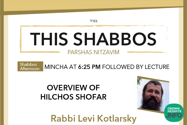 Shabbos at the BESHT: Rabbi Levi Kotlarsky runs Beis Ramik, he will be giving this week’s shiur on an Overview of Hilchos Shofar.